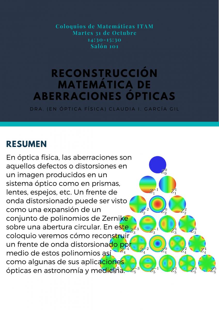 En óptica física, las aberraciones son aquellos defectos o distorsiones en un imagen producidos en un sistema óptico como en prismas, lentes, espejos, etc. Un frente de onda distorsionado puede ser visto como una expansión de un conjunto de polinomios de Zernike sobre una abertura circular.